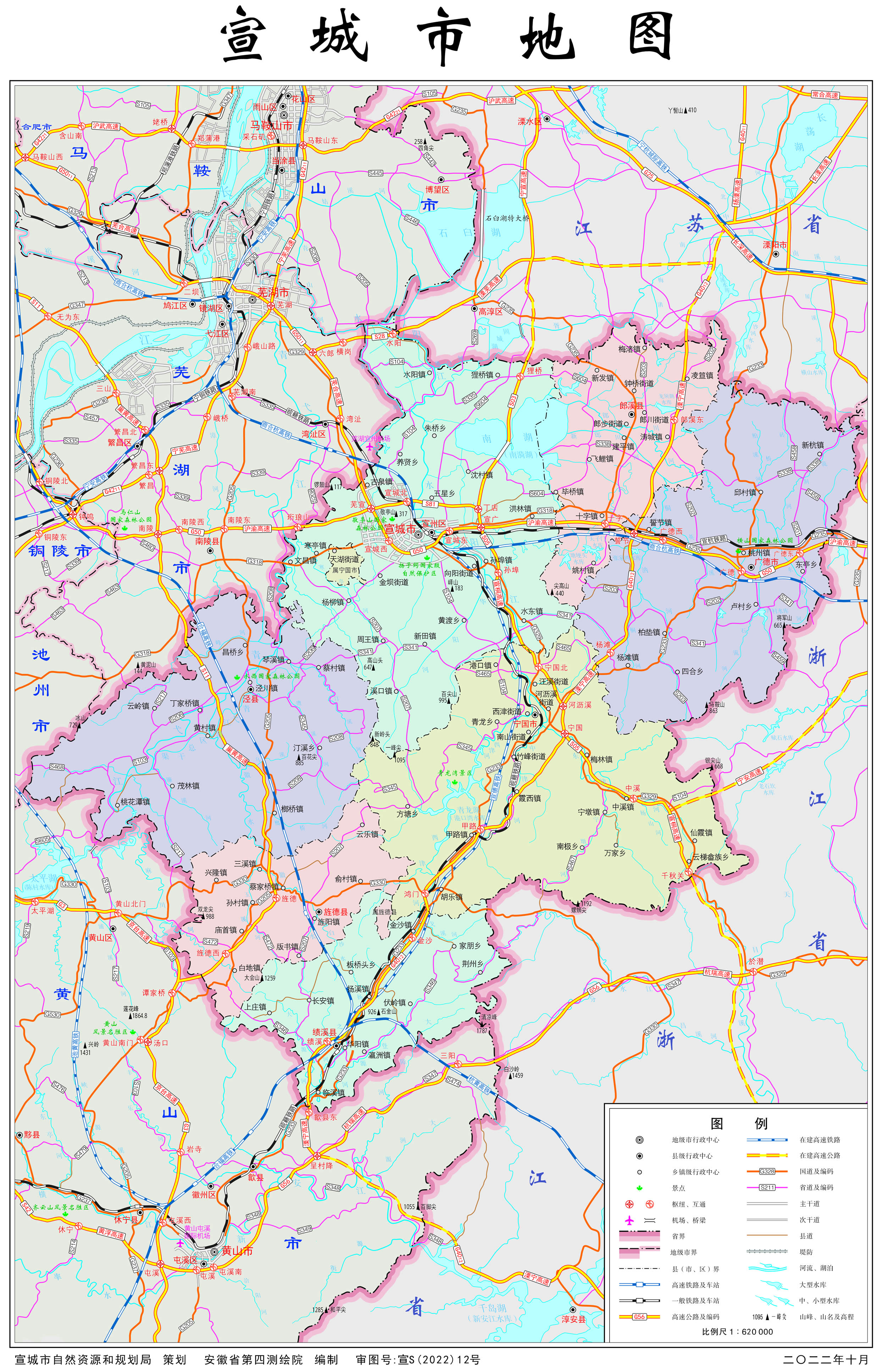 宣城市轄1個市轄區(qū)、4個縣,代管2個縣級市: