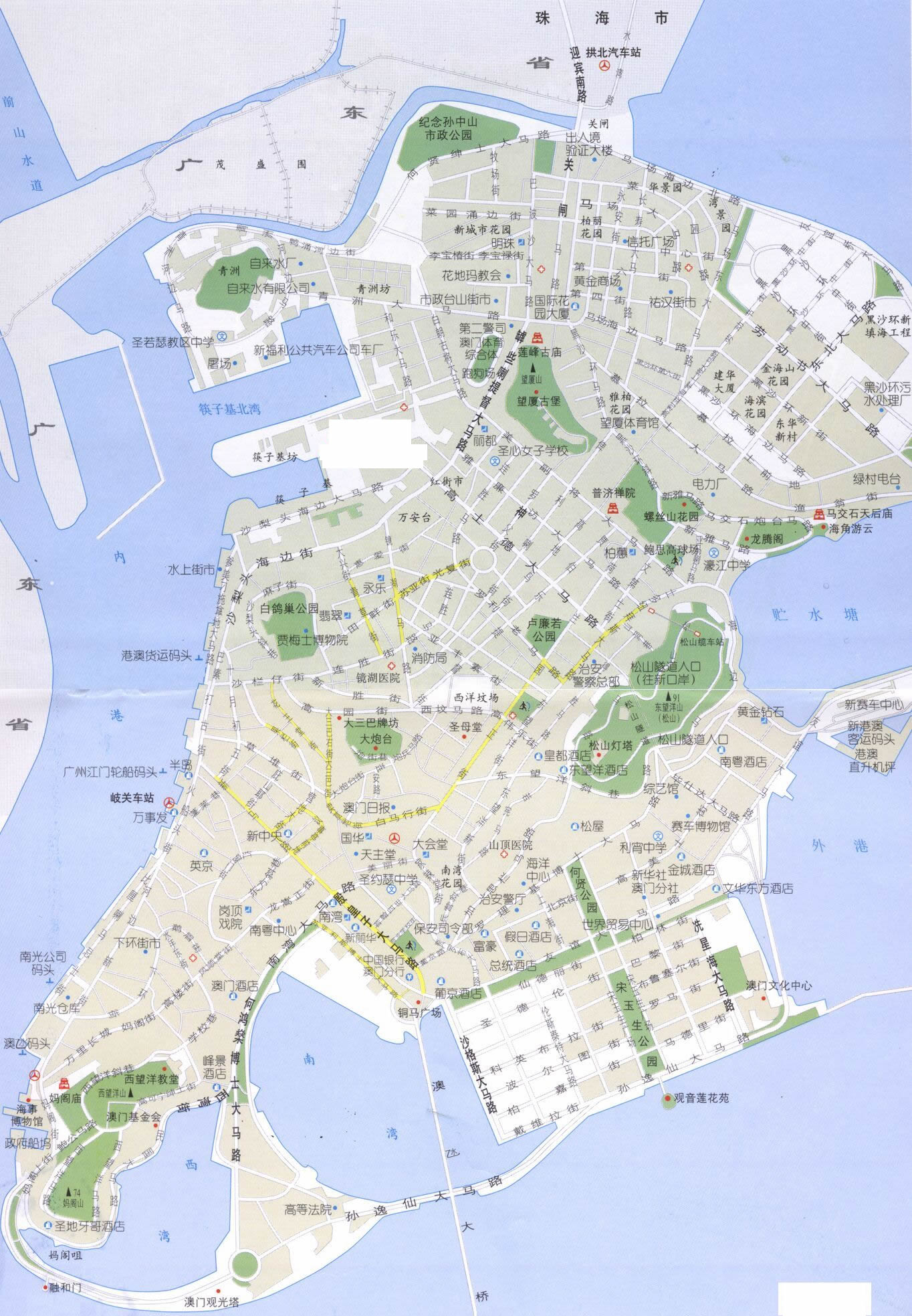 作為離島的氹仔、路環(huán)兩島,過去發(fā)展較為緩慢,但隨著澳凼大橋、友誼大橋和路凼連貫公路的建成,兩個離島近年也熱鬧起來。尤其是凼仔島,新樓矗立,不僅有國際機場、更有大學、酒店、賽馬場及各色住宅等。