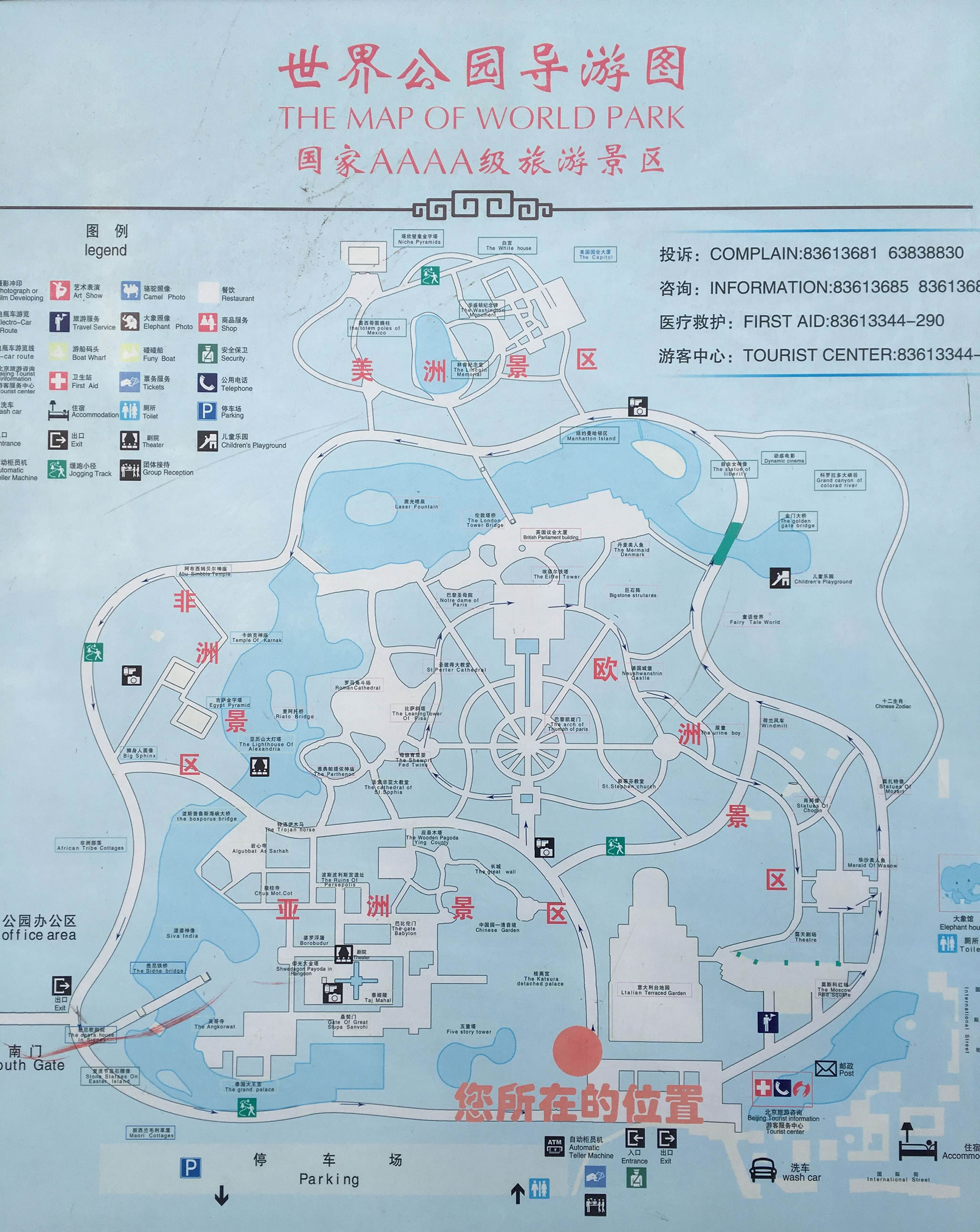 南美、非洲、大洋洲、西亞、東亞、南亞等17個(gè)景區(qū),水系分布 按照四大洋的形狀連通全園。園內(nèi)的雕塑、雕刻有近百件,自 由女神、尿童、丹麥美人魚、大衛(wèi)、維納斯、肖邦、莫扎特等人