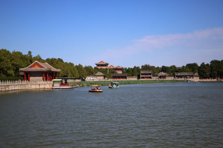 萬壽山后山、后湖古木成林,有藏式寺廟,蘇州河古買賣街。后湖東端有仿無錫寄暢園而建的諧趣園,小巧玲瓏,被稱為“園中之園”。