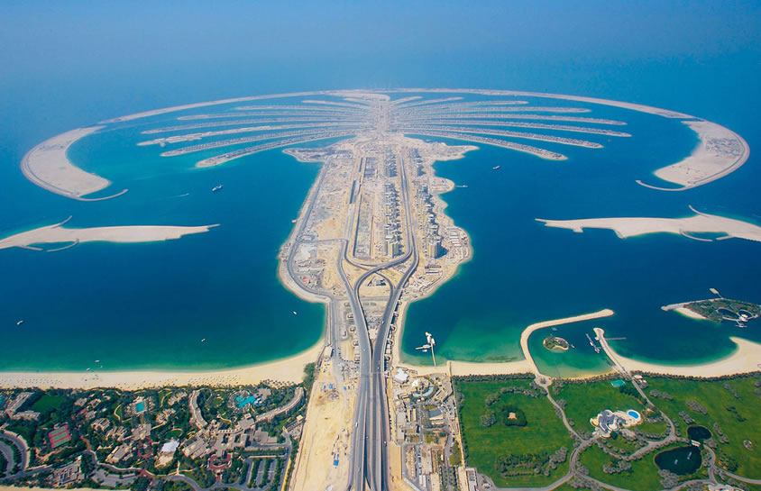 棕櫚島 棕櫚島是建立在迪拜的三座人工群島的總稱。它分為朱美拉棕櫚島、杰貝阿里棕櫚島、迪拉人工島。 每個島上都有大量的別墅、公寓發(fā)售,為整個迪拜酋長國增添了諸多供不應求的海灘。耗資140億美元打造而成的迪拜棕櫚島被譽為“世界第八大奇跡”。 每座島嶼包括三部分:“樹干”、“樹冠”和新月型圍壩。島上還將種植12000棵棕櫚樹,這些樹苗正在位于朱梅拉的苗圃里栽培。整座島嶼就是一個巨大的避暑勝地和游玩天堂,上面擁有2400套海邊住房,可以入住5000人。另外,還有運動場、健身房和電影院等設施。