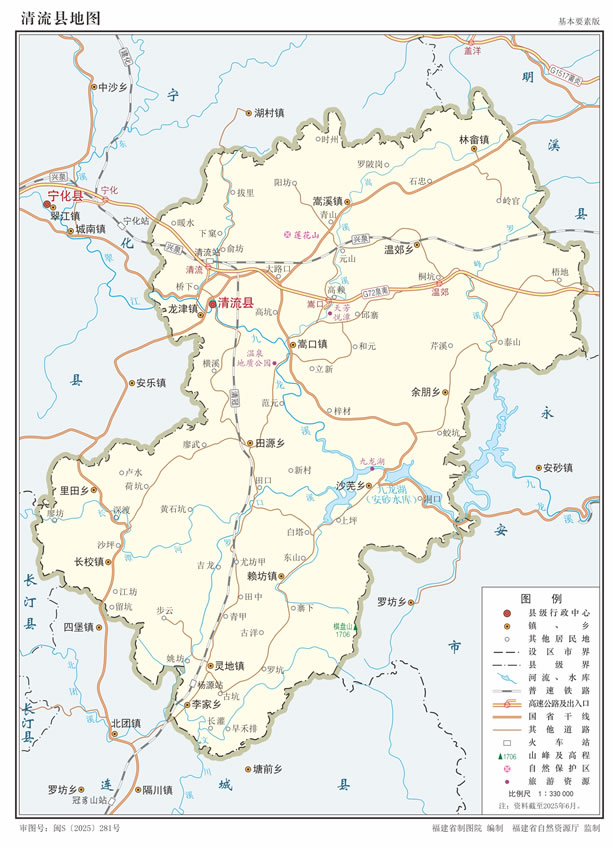 清流縣轄5個(gè)鎮(zhèn)、8個(gè)鄉(xiāng):