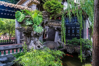 清暉園在陶瓷裝飾運(yùn)用上采用刪繁就簡之法,在二萬多平方米的園區(qū)內(nèi),清一色的青磚灰瓦,沒有一個(gè)陶瓷脊飾。