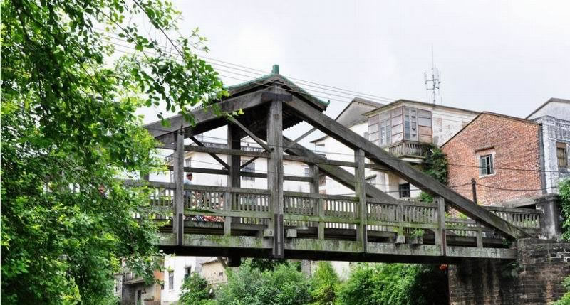 惠愛橋又名舊橋、西門橋,位于合浦縣廉州鎮(zhèn)惠愛路西門江上,宣統(tǒng)三年(1911年)建成。橋身為坤甸木當(dāng)?shù)厮追Q“三鉸拱”。橋長36米,寬2.75米,臺(tái)距18.4米,橋面至橋頂高5.64米。