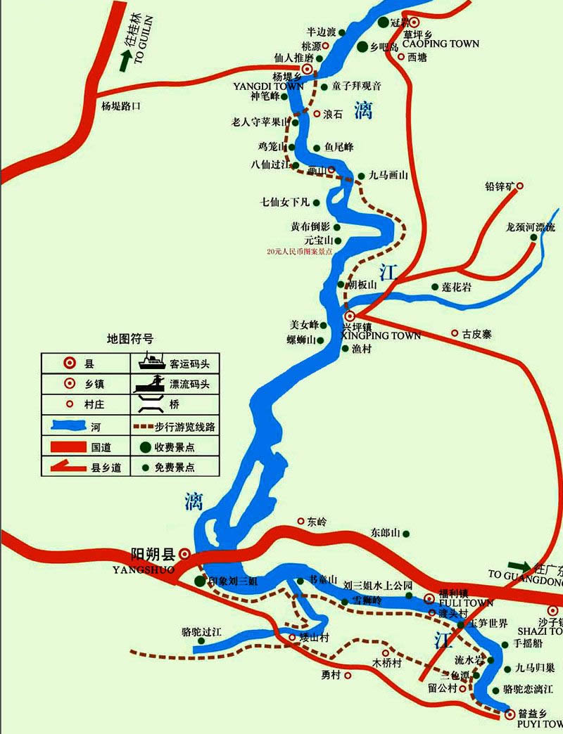 興坪鎮(zhèn)位于廣西壯族自治區(qū)桂林市陽朔縣縣城東北部,漓江上游兩岸,距縣城25公里。漓江流經(jīng)興坪,形成“S”字形河灣,是漓江風(fēng)光的薈萃之地。葉劍英元帥《由桂林舟游陽朔》詩道:“春風(fēng)漓水客舟輕,夾岸奇峰列送迎。馬躍華山人睇鏡,果然佳勝在光坪”。山水相依,景點(diǎn)密集,兼有奇、險(xiǎn)、秀、美、趣的特點(diǎn)。