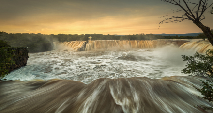 吊水樓瀑布位于鏡泊湖北頭。是景區(qū)的特級自然景源(世界級),酷似聞名世界的“尼亞加拉大瀑布”。平水期時,瀑布一般幅寬五六十米,落差十二米。但在汛期,最高落差僅十余米,瀑布最大幅寬可達四百余米,從南、西、北三個方向以排山倒海之勢從熔巖壁頂直撲黑龍?zhí)丁K聘≡贫蜒,白霧四濺,百米之外,水珠鋪面;又似銀河倒掛,彩練懸崖,奔騰咆哮,聲如奔雷。與貴洲的黃果樹瀑布、黃河壺口瀑布、九寨溝諾日朗瀑布、臺灣的文龍瀑布、廬山的三疊泉瀑布并稱中國六大名瀑。