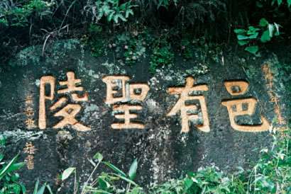 邑有圣陵位于炎陵故道,橋頭嶺下官壟口道旁,石壁上鐫刻乾隆十六年路碑“邑有圣陵”四個(gè)大字。炎帝去世后,人們把他安葬在鐘靈毓秀的“長(zhǎng)沙茶鄉(xiāng)之尾”。幾經(jīng)周折,終于來到一個(gè)嶠陽嶺的地方。這里“四面嶄絕,鳥道羊腸”。站在嶠陽嶺上,舉目南望,只見群山環(huán)抱之中,有一塊平展開闊的原野。洣水三回九折,穿嶂過峽,奔騰而來。原野南端,層巒疊翠,虬木森森,煙云出沒,氣象萬千。認(rèn)為鹿原陂就是一塊富庶之地,至尊之地,文明發(fā)祥之地。辛勞一生的炎帝,應(yīng)該有這樣一塊安息之地。