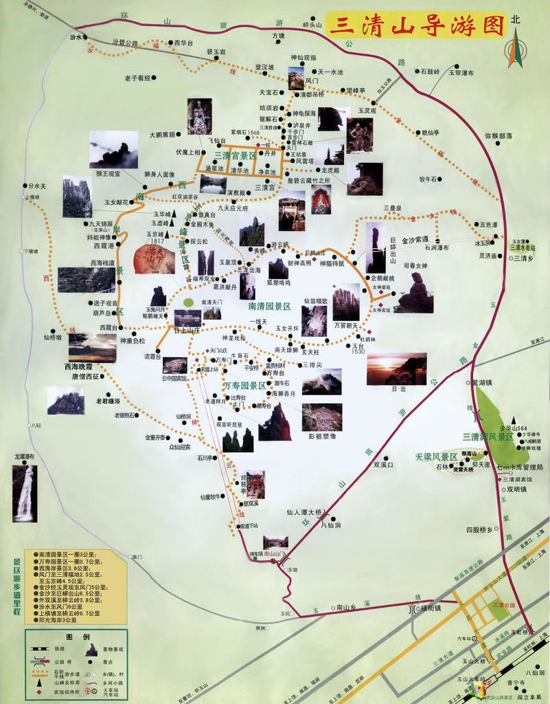 南清園景區(qū)位于三清山中心位置,是三清山自然景觀最奇絕的景區(qū),平均海拔為1577米。南清園集中展示了十四億年地質(zhì)演化形成的花崗巖峰林地貌特征,是三清山自然景觀的精華。范圍包括從瀏霞臺(tái)經(jīng)禹皇頂、巨蟒出山、東方女神、杜鵑谷、一線天至游仙谷,構(gòu)成一個(gè)環(huán)線。