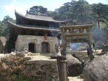 時(shí)至唐朝,道教被朝廷奉為國教,士穿行往返于大江南北,三清山風(fēng)景名勝區(qū)的道教也隨之興盛起來,香火不斷,朝山香客絡(luò)繹不絕。唐(周)圣元年(639),朝廷為了加強(qiáng)統(tǒng)治,割衢州須江(今稱為江山市)之南鄉(xiāng)、常山之西鄉(xiāng)和饒州弋陽之東鄉(xiāng),設(shè)玉山縣,遂將三清山風(fēng)景名勝區(qū)劃為玉山縣所轄。其后,方士將化緣所得,在葛洪結(jié)廬煉丹之處營建了三清山風(fēng)景名勝區(qū)上第一座道教建筑--老子宮觀(此觀被稱為“三清福地”),進(jìn)一步鞏固了三清山風(fēng)景名勝區(qū)在道教史上的重要地位。北宋寧真宗篤信道教,奉老子為太上老君混元上德皇帝。此時(shí),在三清山風(fēng)景名勝區(qū)一帶開始出現(xiàn)成批的道教建筑。方士們?yōu)榱思o(jì)念葛洪開山之功,在山上建起了葛仙觀,內(nèi)中供奉葛仙翁和李尚書石像;同時(shí)建起的還有福慶觀、靈濟(jì)廟。尤其值得一提的是,方士們?cè)谔扉T峰的懸崖之上,用天然花崗巖雕干砌成一座六層五面的風(fēng)雷塔,此塔歷盡千年風(fēng)雨,至今巍然不動(dòng),被譽(yù)為三清山道教建筑中的一顆燦爛明珠。