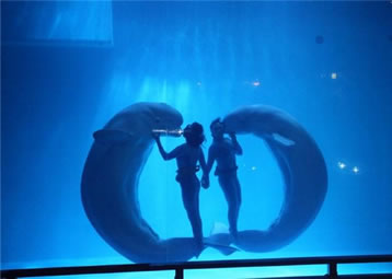 表演地點(diǎn):白鯨水下表演場(開放式表演場,無表演時(shí)游客可透過玻璃展窗看白鯨游動(dòng))。