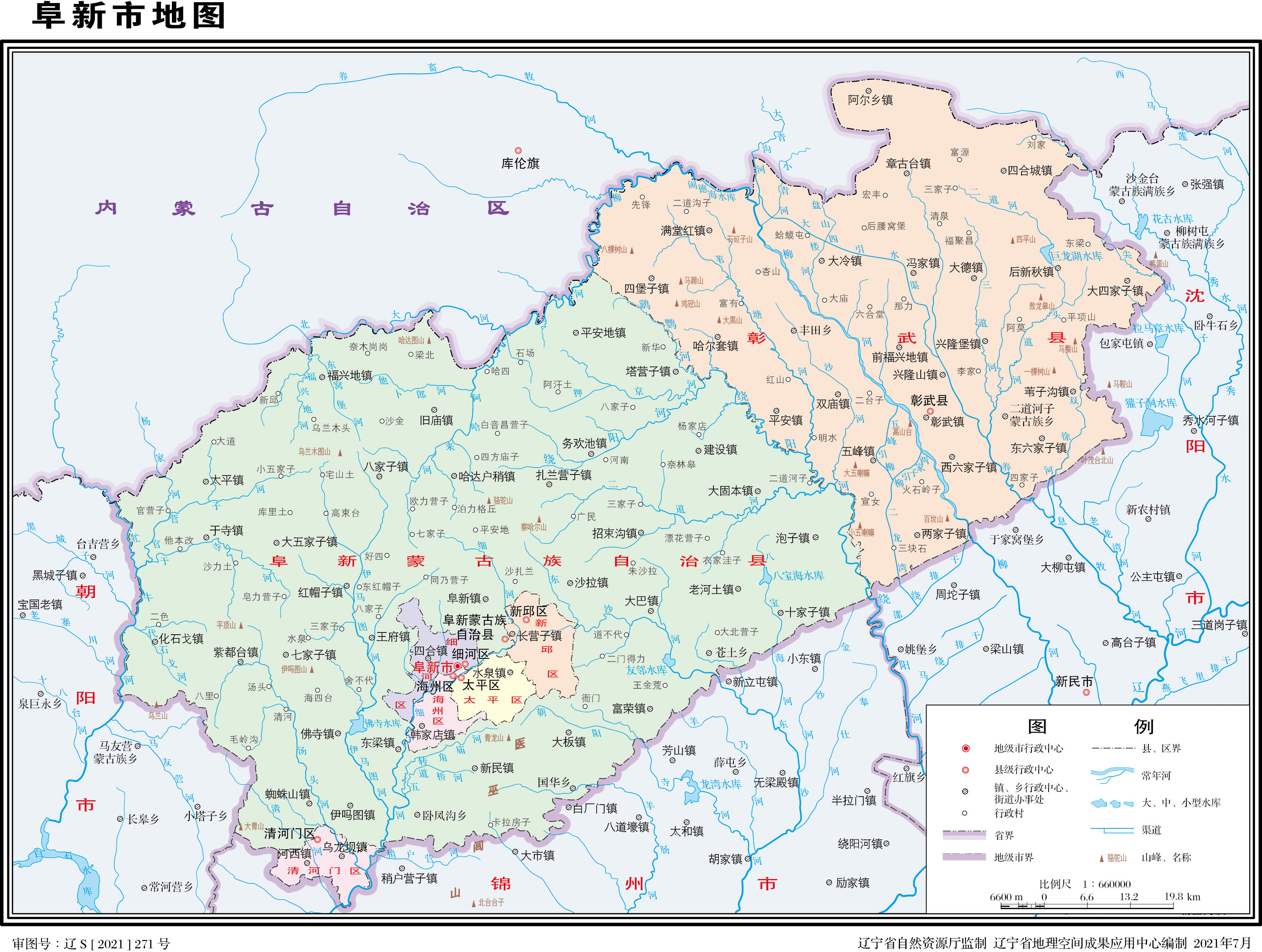 阜新市轄5個(gè)區(qū)、2個(gè)縣: