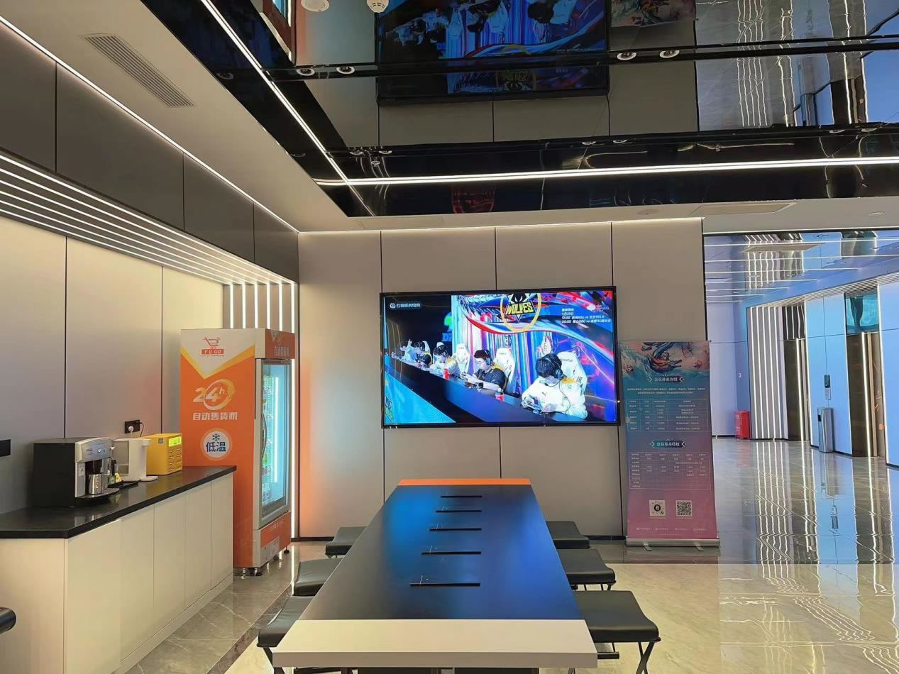 為提高玩家觀看比賽的趣味性,營(yíng)造賽事討論的刺激氛圍,滿足玩家社交娛樂(lè)需求,門(mén)店特意在酒店大廳放置100寸屏電視,中庭上方設(shè)計(jì)200寸大投影屏,身處房間即可觀賽,音頻直連房間內(nèi)音響,無(wú)論你是在房間還是大廳,都能享受大屏看比賽的快樂(lè)!