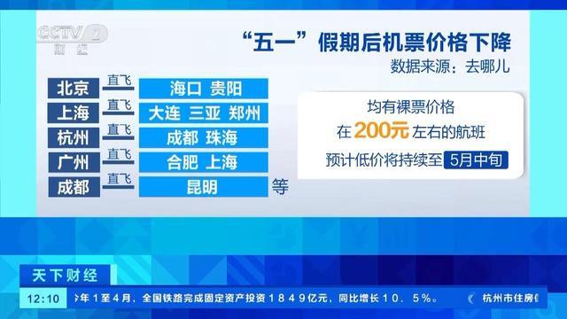 “五一”假期過(guò)后,多條熱門航線的機(jī)票價(jià)格大幅下降,其中部分低至一折左右。