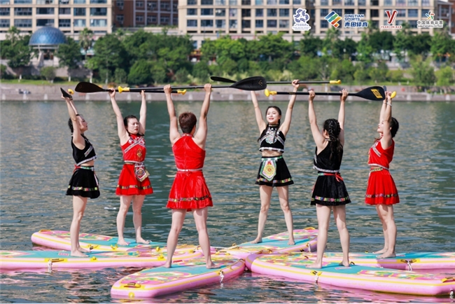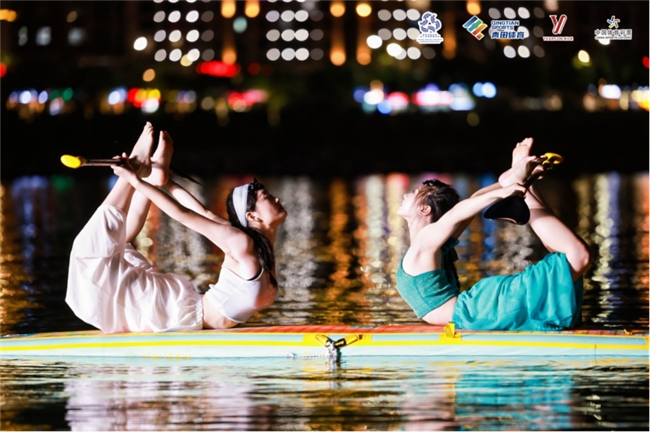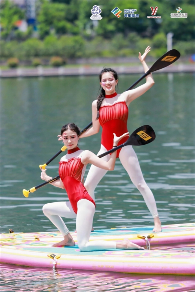 前屈、后彎、扭轉(zhuǎn)、平衡、倒置……音樂(lè)與動(dòng)作和諧統(tǒng)一,身體與槳板融為一體。參賽隊(duì)員們展示的不僅是控制身體的力量,更是人與自然、美與健康的完美結(jié)合,圍觀群眾不時(shí)給予陣陣掌聲。