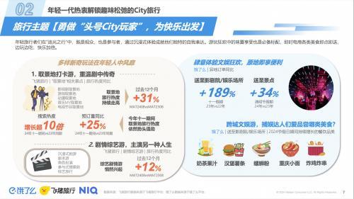 報告認為,“為快樂出發(fā)”成為影響當下年輕人旅行決策的考量因素,對情感價值、感官體驗的追求讓他們爭當“頭號City玩家”。來自飛豬的數(shù)據(jù)印證該結(jié)論,即將到來的國慶假期,打卡游戲、影綜取景地的相關(guān)旅游熱度同比增長超10倍,臨沂、常州、宜昌則成為跟著演唱會、音樂節(jié)去旅行的黑馬目的地。