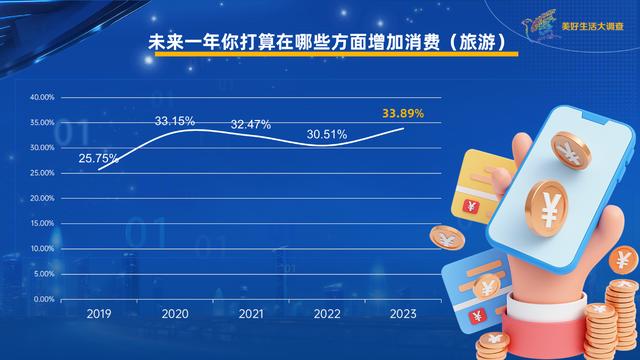 《美好生活大調(diào)查》發(fā)現(xiàn),2024年在國人消費(fèi)意愿榜上,旅游又一次站到了榜首的位置。這已經(jīng)是5年來,旅游第三次站在消費(fèi)意愿榜的第一名,今年更是達(dá)到了5年來的最高點(diǎn)。