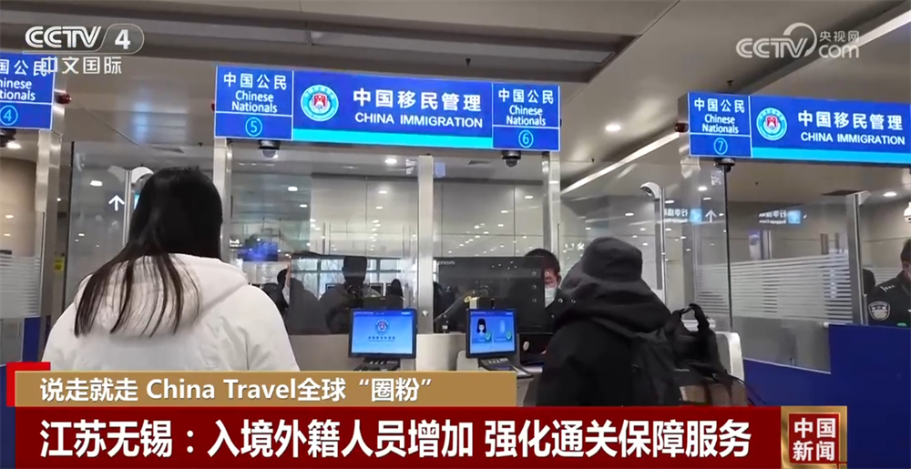 隨著外國人使用過境免簽新政入境人數(shù)的增加,為更好服務(wù)外籍人員,無錫公安出入境管理部門提前制定預案,全力做好通關(guān)保障服務(wù)。(來源:央視網(wǎng))