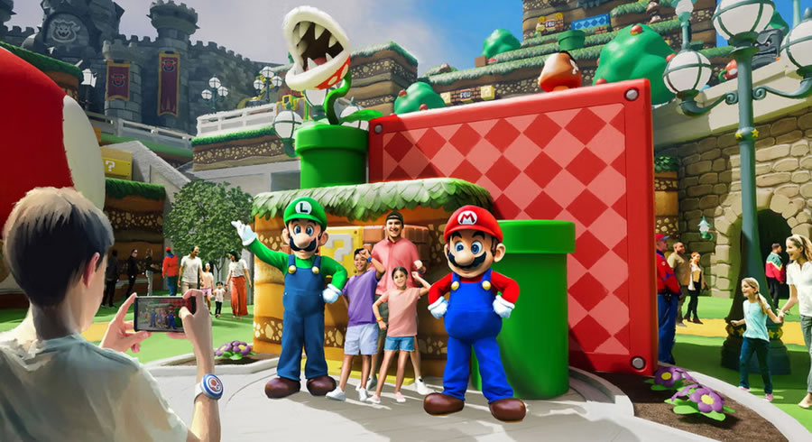 項(xiàng)目由五大官方主題宇宙聯(lián)動(dòng),從踏入樂(lè)園中央的 “星際之光廣場(chǎng)(Celestial Park)” 開(kāi)始,游客將穿越由發(fā)光步道串聯(lián)的五大主題世界,每一處均由環(huán)球影業(yè)與頂級(jí)IP聯(lián)合打造:第一個(gè)超級(jí)任天堂世界(Super Nintendo World)由任天堂(Nintendo)工作室操刀, 作為北美首個(gè)、全球最大的任天堂主題區(qū),游客將佩戴 “能量手環(huán)(Power-Up Band)” 進(jìn)入1:1還原的蘑菇王國(guó)。核心設(shè)施 “馬里奧卡丁車(chē):庫(kù)巴的挑戰(zhàn)(Mario Kart: Bowser’s Challenge)” 通過(guò)AR眼鏡與動(dòng)態(tài)軌道結(jié)合,讓玩家在虛實(shí)交織的賽道上發(fā)射虛擬龜殼;家庭向的 “耀西的冒險(xiǎn)騎行(Yoshi’s Adventure Ride)” 則穿越彩虹賽道與食人花叢林,車(chē)載攝像頭自動(dòng)生成動(dòng)態(tài)紀(jì)念照片。
