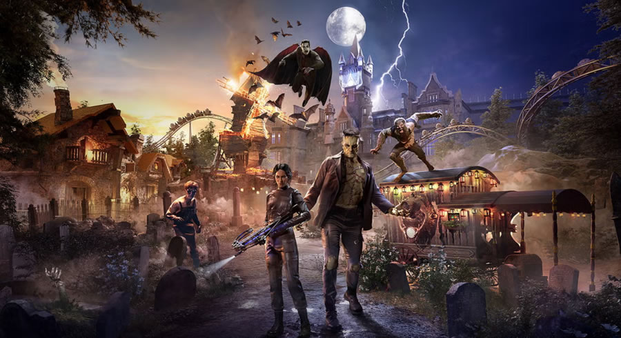 另一個(gè)園區(qū)黑暗宇宙(Dark Universe)則致敬環(huán)球經(jīng)典怪物電影,暗黑美學(xué)貫穿始終。標(biāo)志性設(shè)施 “德古拉的詛咒:自由墜落(Dracula’s Curse: Freefall Tower)” 結(jié)合全息投影與百米極速墜落,游客在驚悚劇情中與吸血鬼纏斗; “科學(xué)怪人:命運(yùn)實(shí)驗(yàn)室(Frankenstein’s Fate Lab)” 則為多結(jié)局互動(dòng)劇場(chǎng),觀眾通過(guò)手機(jī)APP投票決定人造人的善惡,觸發(fā)不同逃生路線。