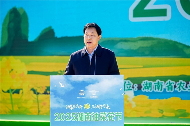 湖南省農(nóng)業(yè)農(nóng)村廳黨組成員、副廳長龔昕在致辭中指出,近年來,湖南省堅決貫徹落實國家保障糧油安全決策部署,持續(xù)打造油料特色千億產(chǎn)業(yè),油菜種植面積從2019年的1861.5萬畝擴大到2024年的2255萬畝,總產(chǎn)量達266.6萬噸,油菜全產(chǎn)業(yè)鏈產(chǎn)值突破570億元。做大做優(yōu)做強油菜產(chǎn)業(yè),農(nóng)文旅融合是關(guān)鍵。舉辦湖南油菜花節(jié),就是要以花為媒、借花興業(yè),搭建起一個全方位展示湖南鄉(xiāng)村魅力的大舞臺,推動油菜產(chǎn)業(yè)多元化發(fā)展,帶動鄉(xiāng)村全域富美強。