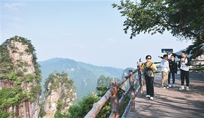 韓國游客在湖南張家界國家森林公園黃石寨景區(qū)游覽。