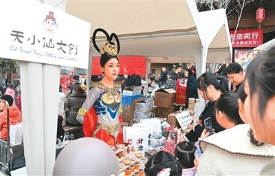 游客在甘肅天水“天水麻辣燙吃貨節(jié)”現(xiàn)場選購文創(chuàng)產(chǎn)品。