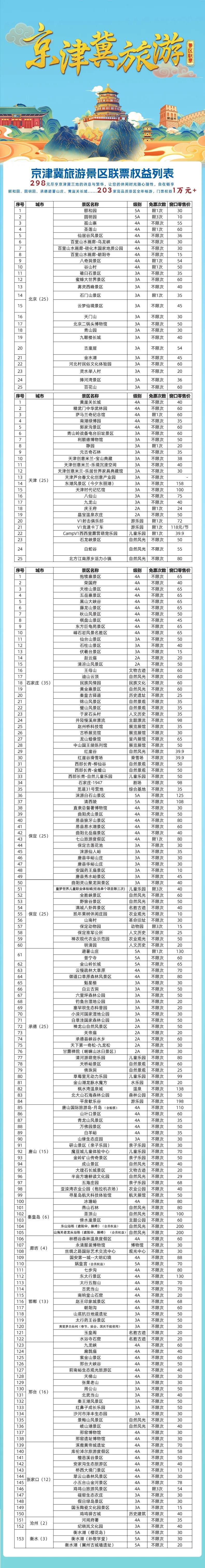 首批入選聯(lián)票的景區(qū)中,北京、天津各25家,河北153家。其中,石家莊景區(qū)涵蓋正定古城、隆興寺、趙州橋等文化地標(biāo),以及西部長青、漫山花溪谷等自然休閑勝地,為游客提供多樣化選擇。游客線上可通過“文創(chuàng)行”“全冀游”“樂游京津冀一碼通”等平臺(tái)購買。