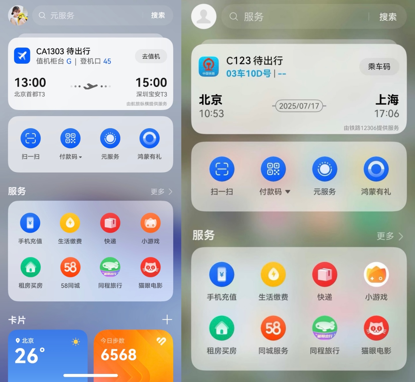 華為負一屏出行好幫手,高鐵航班信息全掌握