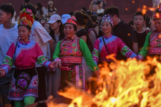 “不用懂專業(yè)舞步,跟著大家一起,怎么開心怎么跳!” 在大理州巍山縣拱辰樓廣場(chǎng),躍動(dòng)的篝火映紅了古老的城墻,來自西安的游客劉欣已融入當(dāng)?shù)貞c;鸢压(jié)的彝族打歌隊(duì)伍中。“打歌隊(duì)員帶領(lǐng)大家圍著篝火唱跳,簡直太開心了!”她說。