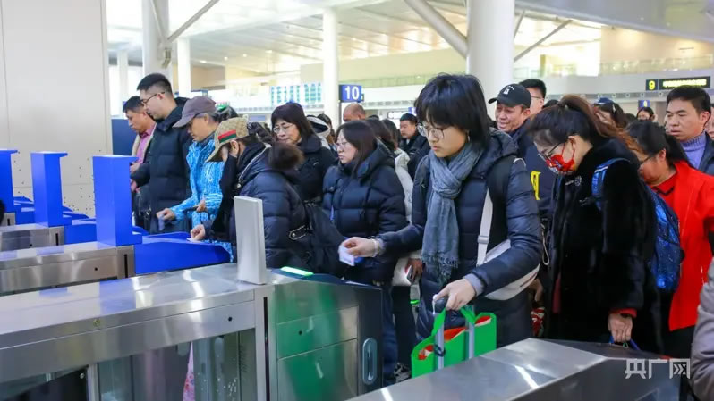 春運(yùn)首日呼和浩特火車東站旅客檢票進(jìn)站(央廣網(wǎng)記者 楊亞東 攝)