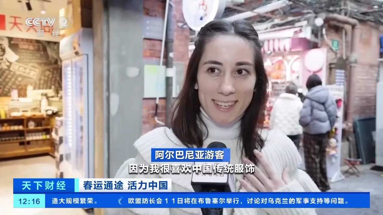 阿爾巴尼亞游客:準(zhǔn)備給我外甥和我自己買衣服,因?yàn)槲液芟矚g中國(guó)傳統(tǒng)服飾,我想在我的婚禮上穿著它。