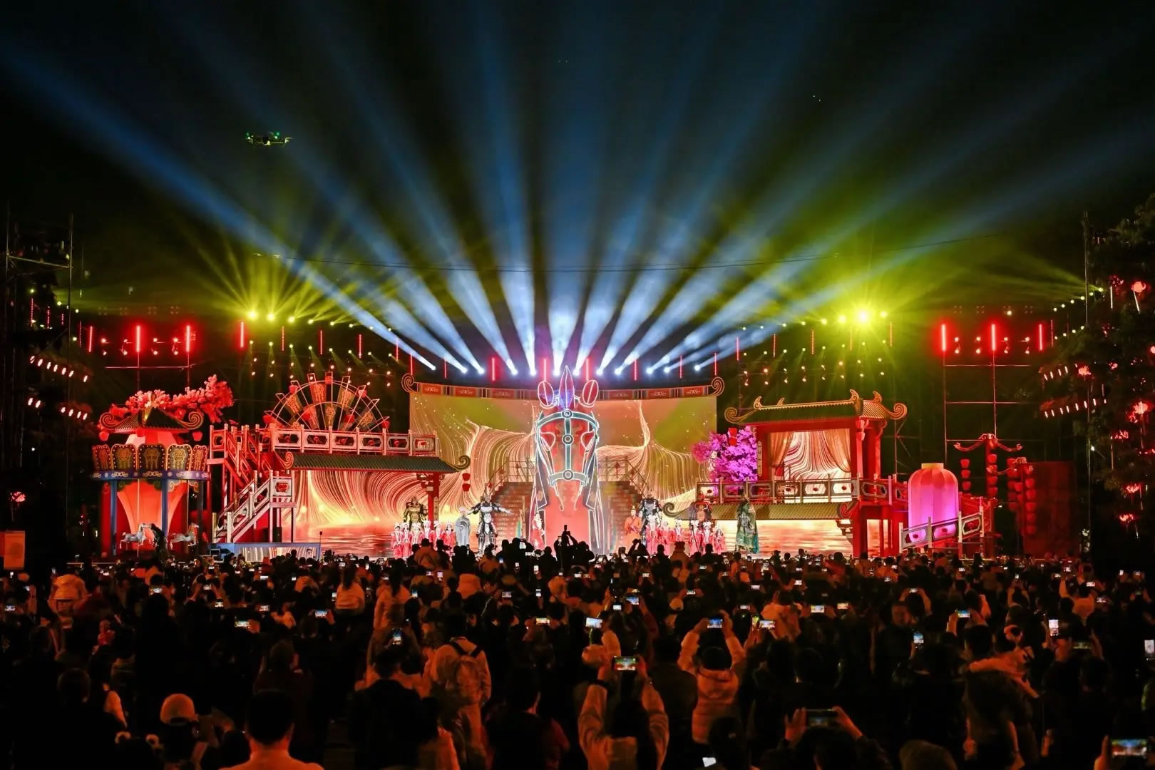 成都市圍繞“九天開出一成都·萬戶千門入畫圖——到成都街頭走一走”核心主題,持續(xù)開展主題活動(dòng)130余場(chǎng)次,共同營造活力滿滿、熱氣騰騰的新春喜慶氛圍。宜賓作為中央廣播電視總臺(tái)2026年春節(jié)聯(lián)歡晚會(huì)四大分會(huì)場(chǎng)之一,合江門廣場(chǎng)、501白酒文化圣地、李莊古鎮(zhèn)等重點(diǎn)景區(qū)景點(diǎn)亮相全國熒幕。達(dá)州市突出科技民俗盛宴點(diǎn)亮除夕夜,渠縣“科技盛景,廟會(huì)新元”國風(fēng)廟會(huì)盛大開幕,融合無人機(jī)光影秀、AI機(jī)器人互動(dòng)秀、直升機(jī)低空巡景與廟會(huì)馬戲團(tuán),打造沉浸式科技民俗體驗(yàn)。南充市閬中古城作為中國春節(jié)文化之鄉(xiāng),創(chuàng)新推出新春大廟會(huì)、五湖四海閬苑過大年、2026閬中春節(jié)聯(lián)歡會(huì)等特色文旅活動(dòng)。
