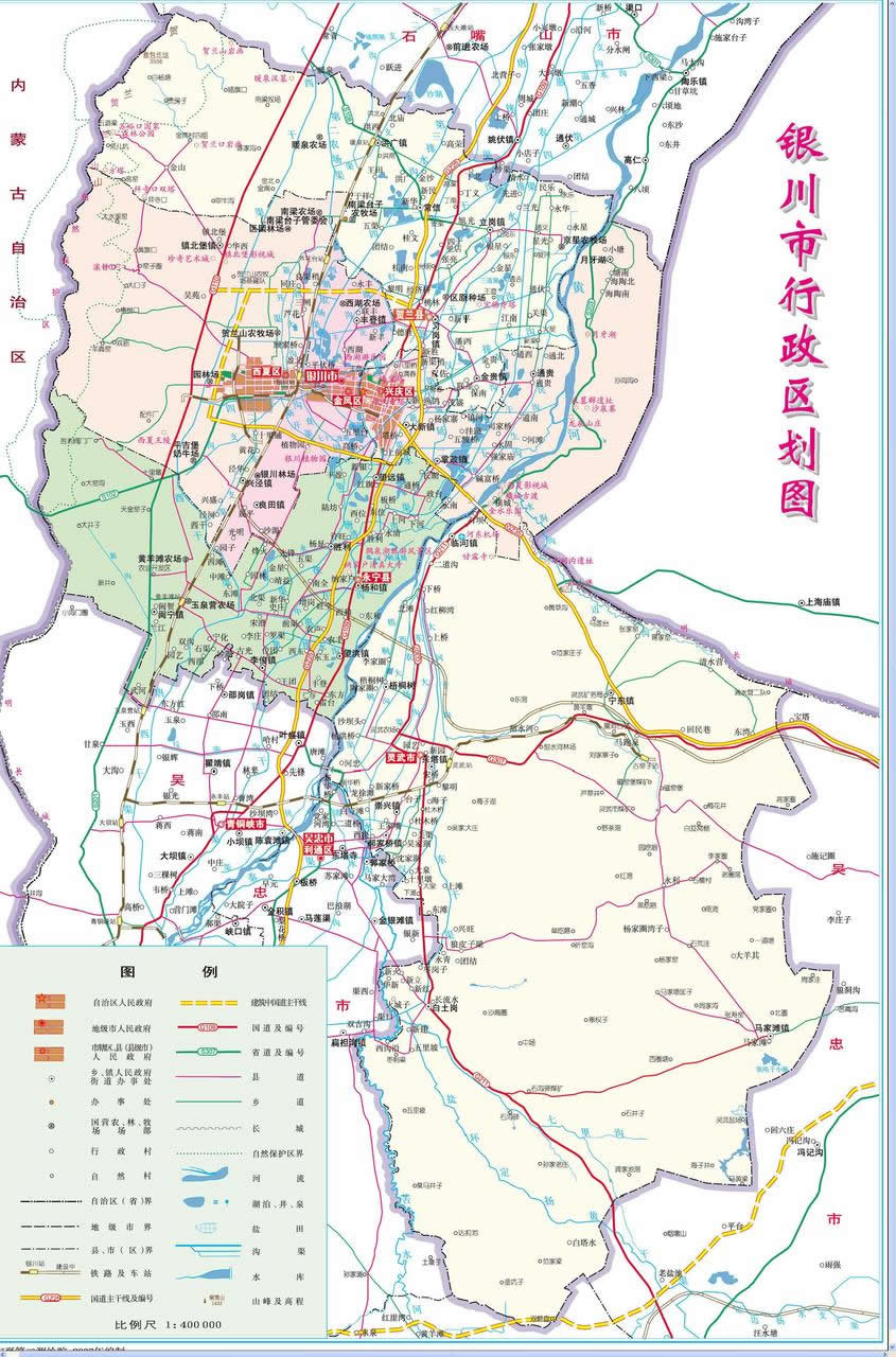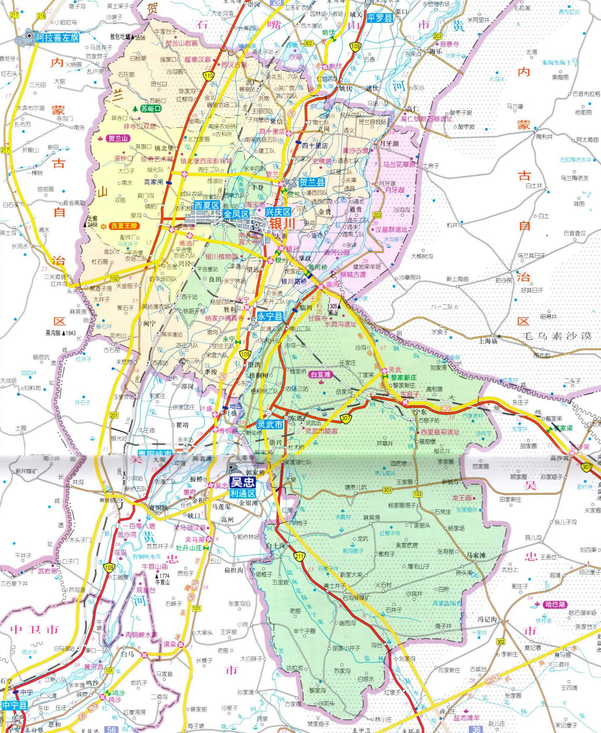 銀川市轄3個市轄區(qū)、2個縣,代管1個縣級市: