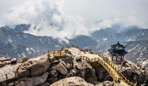 巨峰景區(qū):與南線乘車方式相同,在大河?xùn)|站下車即可到達(dá)巨峰景區(qū)的收費站。由觀光車將游客沿盤山公路載至索道站,游客可在車上欣賞沿途石壁上的關(guān)于嶗山歷史文化的石刻,在索道站可選擇體驗乘索道上山和沿石路上山的不同樂趣。