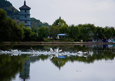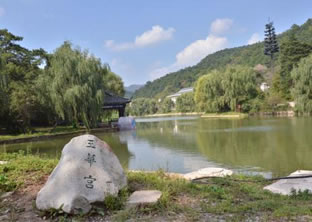 玉華宮東宮也叫郭玉溝,樹木郁蔥,清泉細(xì)流,天然巖窟鬼斧神工,人文景觀與自然景色渾然一體,若仙境一般。初春,山花爛漫,到玉華宮賞花,沉醉于山花爛漫之中,流連忘返;盛夏,溪回松風(fēng),曠然神怡,到玉華宮避暑,置身天然氧吧,感受郭玉溝的清爽和寧靜;金秋,秋菊盛開,色彩斑斕,到玉華宮游園,體驗(yàn)陶淵明“采菊東籬下,悠然見南山”的閑情;隆冬,銀裝素裹,冰雕燈展 喜迎四方游客。