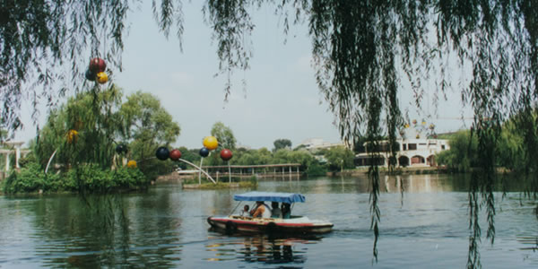 怡湖園:位于成都市北郊青白江新建成綿高速公路旁的怡湖公園,距離成都市區(qū)約30公里,占地約213畝,其中湖面積約70畝。該園于1986年由青白江區(qū)建委動(dòng)工興建,短短兩年多時(shí)間建成,于1988年正式對外開放。怡湖公園屬于現(xiàn)代化的大型綜合公園,該園以其強(qiáng)烈的現(xiàn)代化氣息的城市園林風(fēng)格建筑和異域情調(diào)吸引了成千上萬的中外游客,上海學(xué)林出版社曾將該園編入面向國內(nèi)外發(fā)行的《中國旅游名勝》畫冊。該園大門,設(shè)計(jì)精巧,造型獨(dú)特,雅致舒暢,極富象征意義。