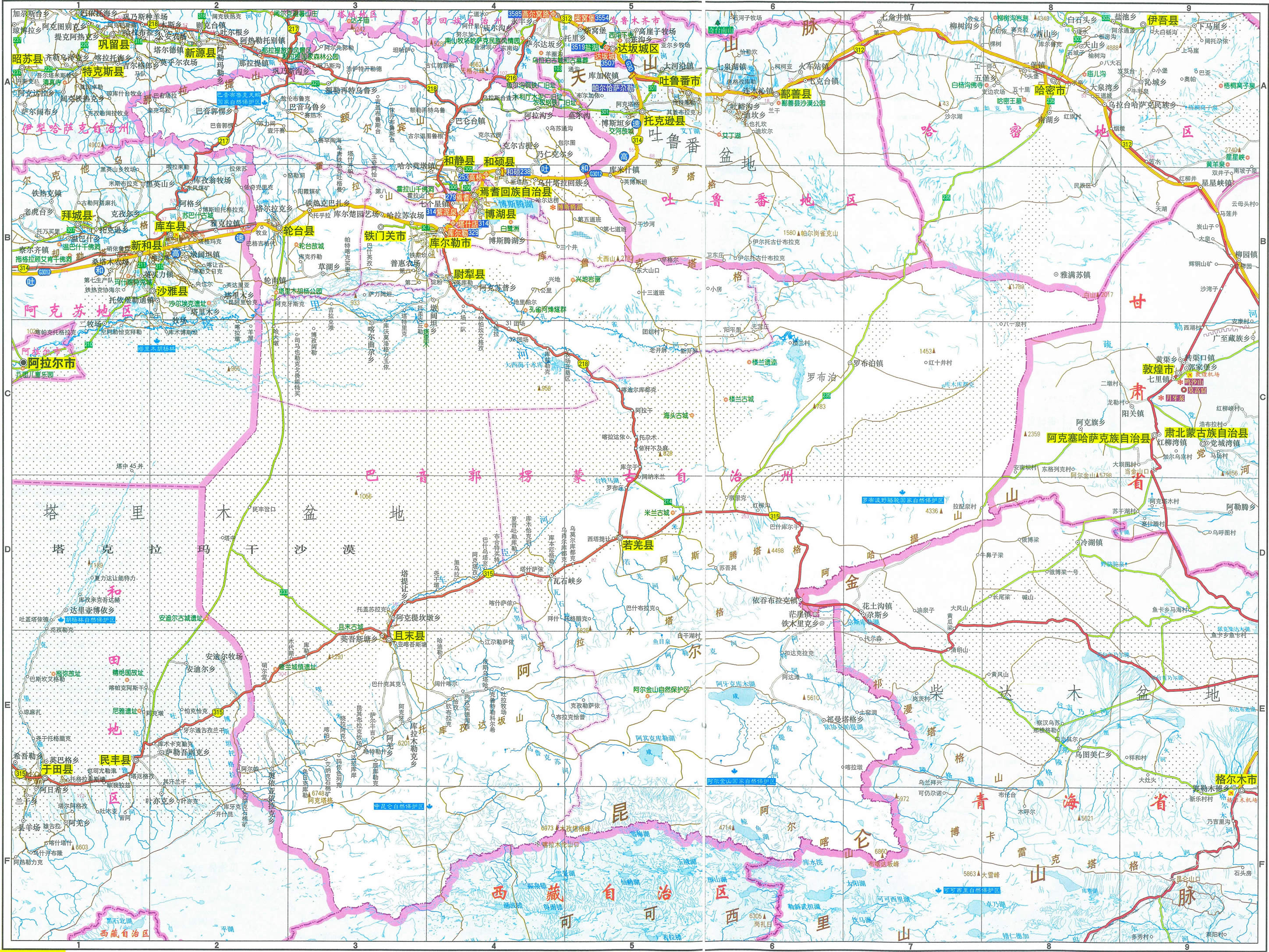 尉犁縣 面積59251平方千米,人口107487,政府駐尉犁鎮(zhèn),下轄3個鎮(zhèn)、5個鄉(xiāng)