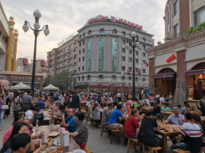 新疆國際大巴扎大型宴會(huì)廳是新疆較大的具備大型歌舞表演并同時(shí)可容納1000人用餐、以新疆民族歌舞、文化、飲食結(jié)為—體的大型歌舞宴會(huì)廳。飲食改變了傳統(tǒng)的圍餐制而采用了歐美西方的分餐形式,以新疆民間歌舞表演為主導(dǎo)飲食的觀賞性餐飲廣場。