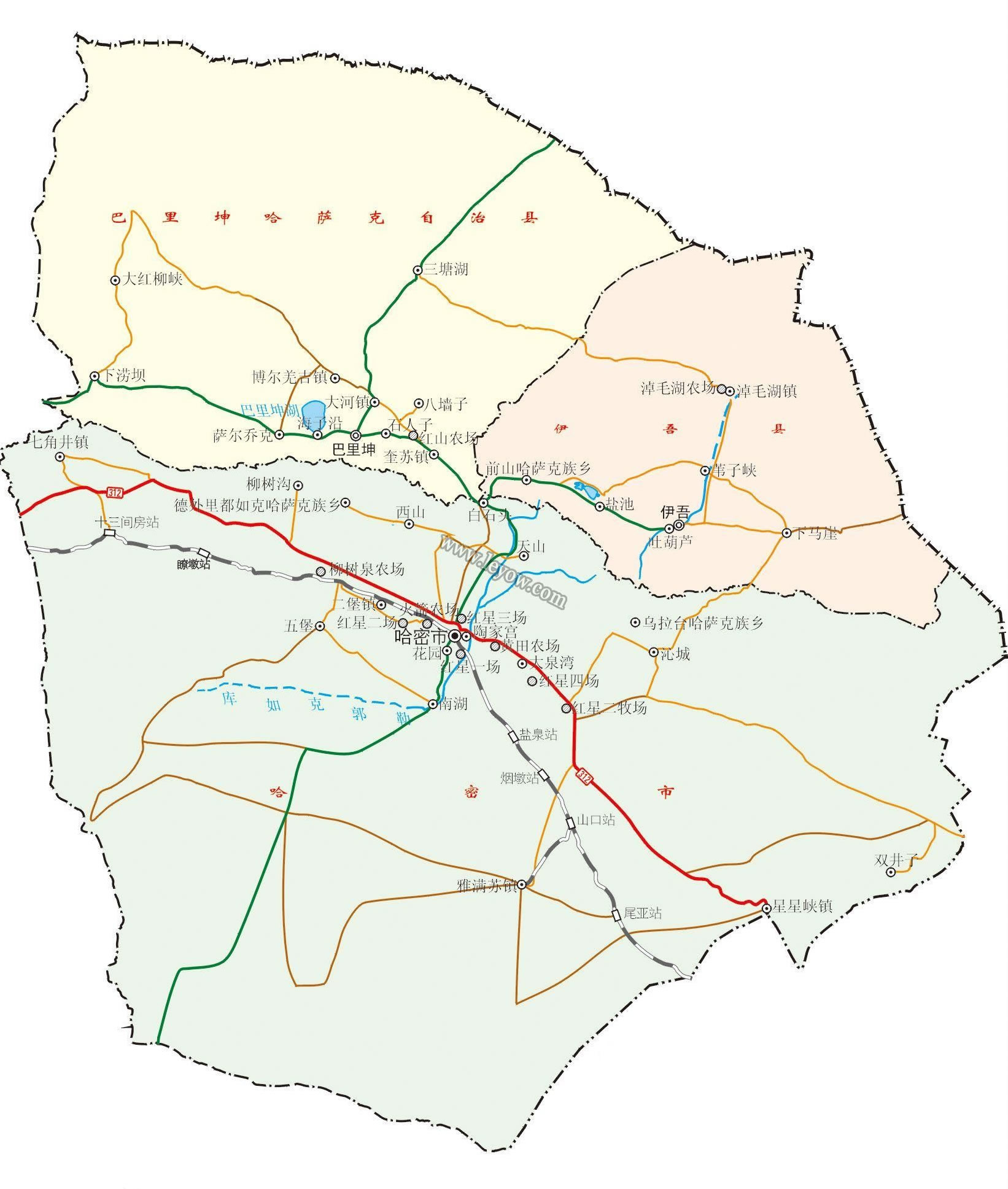 伊州區(qū) 面積80791平方千米,人口431039,政府駐廣東路2號(hào),下轄5個(gè)街道、7個(gè)鎮(zhèn)、12個(gè)鄉(xiāng)