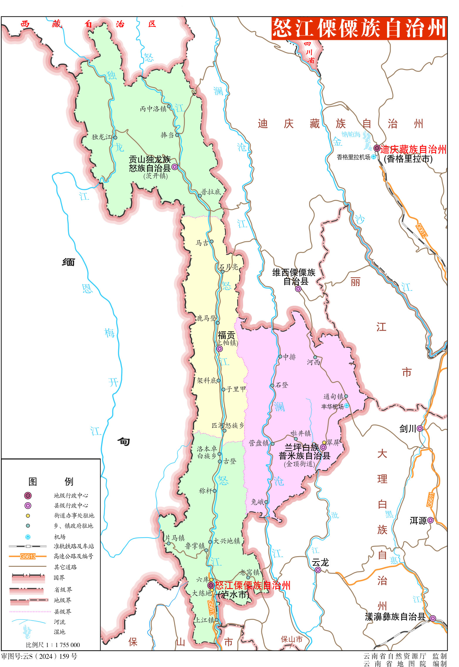怒江傈僳族自治州轄1個縣級市、1個縣、2個自治縣: